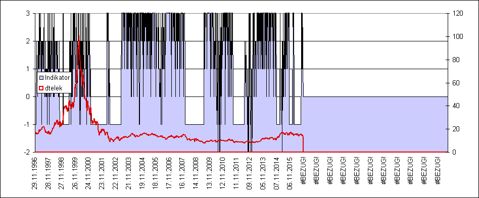 Die historischen Indikatoren schwanken in einem Bereich um den 0 Punkt. Der Neutralitätsgrenze befindet sich bei 1 Punkt. Bei Unter- oder Überschreiten der | ||||||||||||||||